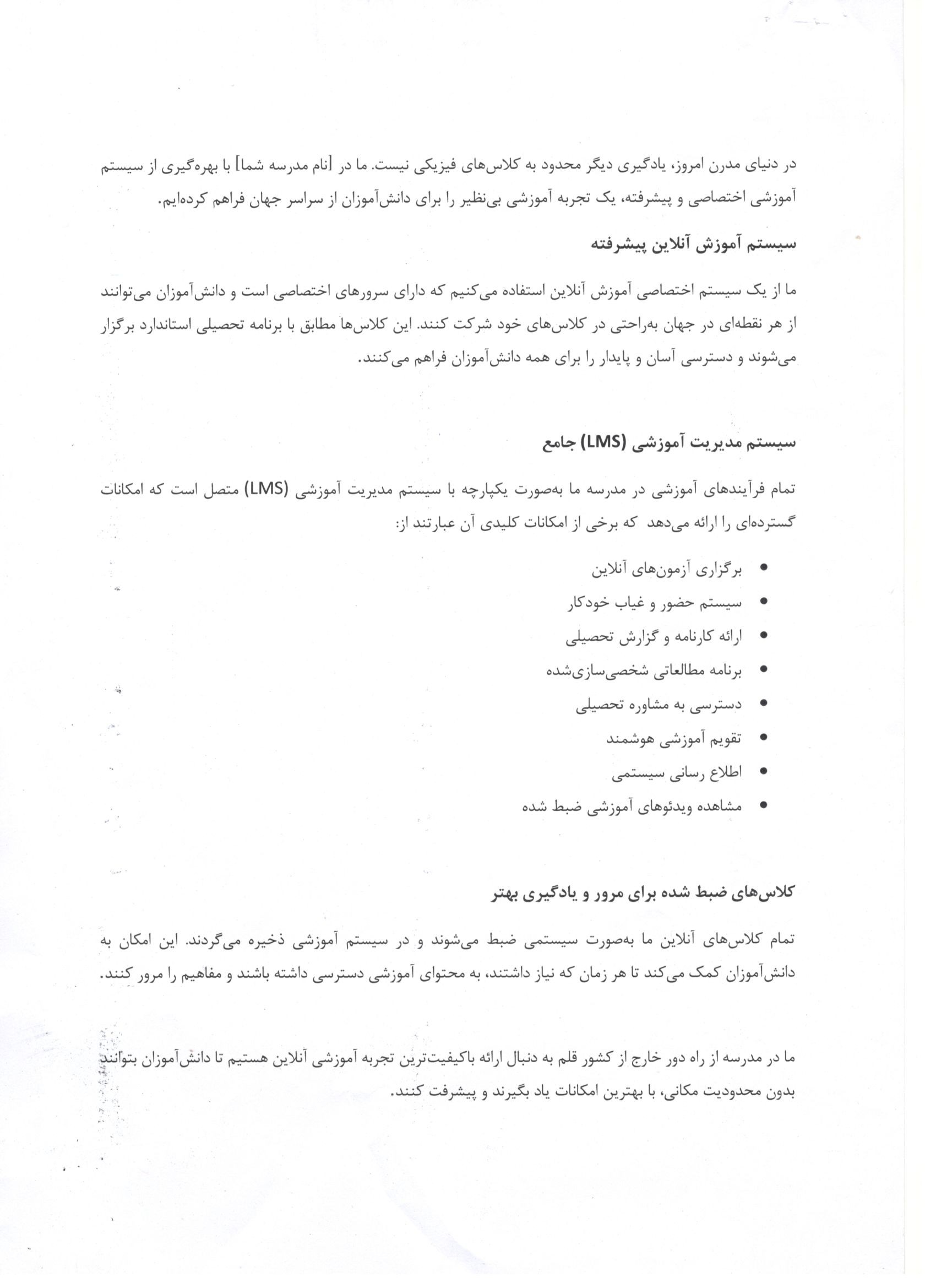 اطلاعات تکمیلی در فایل ضمیمه و صفحه رسمی مدرسه موجود می‌باشند.