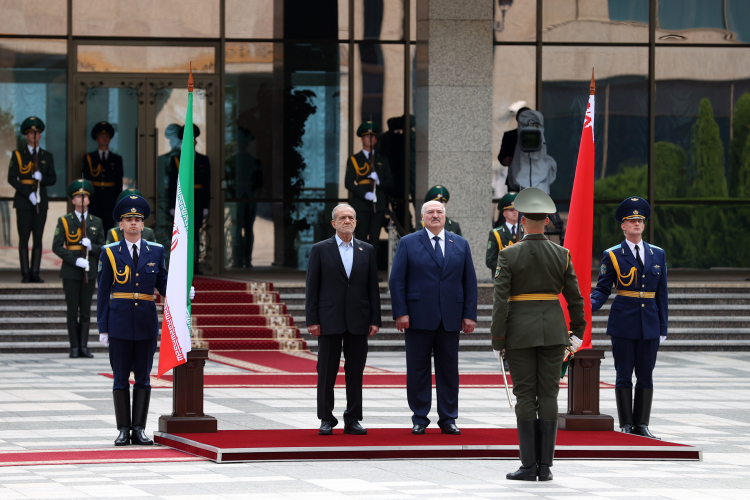 جناب آقای دکتر پزشکیان، رئیس جمهور محترم کشورمان که به دعوت رئیس جمهور بلاروس و به منظور سفری رسمیبه این کشور سفر کرده است، صبح روز چهارشنبه ۲۹ مرداد، در محل کاخ ریاست جمهوری، از سوی آقای الکساندر لوکاشنکو، رئیس جمهور بلاروس مورد استقبال رسمی قرار گرفت.