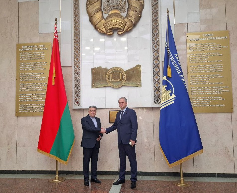 جناب آقای علیرضا صانعی، سفیر محترم کشورمان در روز پنج شنبه مورخ 6 مرداد 1404 با آقای ایگور بوزوفسکی، رئیس آکادمی مدیریت بلاروس که زیر نظر ریاست جمهوری آن کشور فعالیت می‌کند دیدار نمودند.