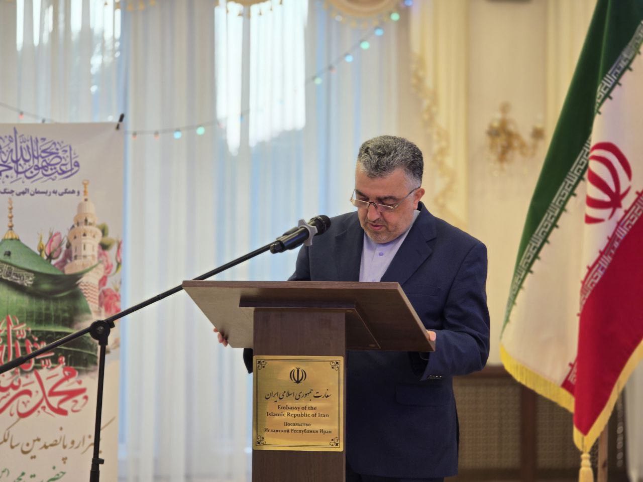 جناب آقای علیرضا صانعی سفیر کشورمان در سخنانی ضمن عرض تبریک به مناسبت 1500مین میلاد فرخنده پیامبر عظیم الشأن اسلام (ص)، به مناقب شخصیت والای ایشان اشاره وتاکید کردند که از صدر اسلام و ابتدای ظهور اسلام و بعثت پیامبر اکرم (ص) دشمنان تلاش کرده اند این ندای توحید، حق طلبی، عدالت و انسانیت را خاموش کنند، اما نه تنها موفق نشده اند، بلکه هر روز شاهد گسترش اسلام و پیروان رسول خدا در اقصی نقاط جهان هستیم. ایشان وحدت مسلمانان را یکی از مهم‌ترین عوامل شکست دشمنان عنوان کردند.